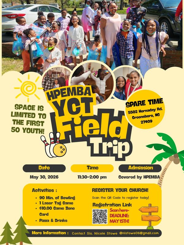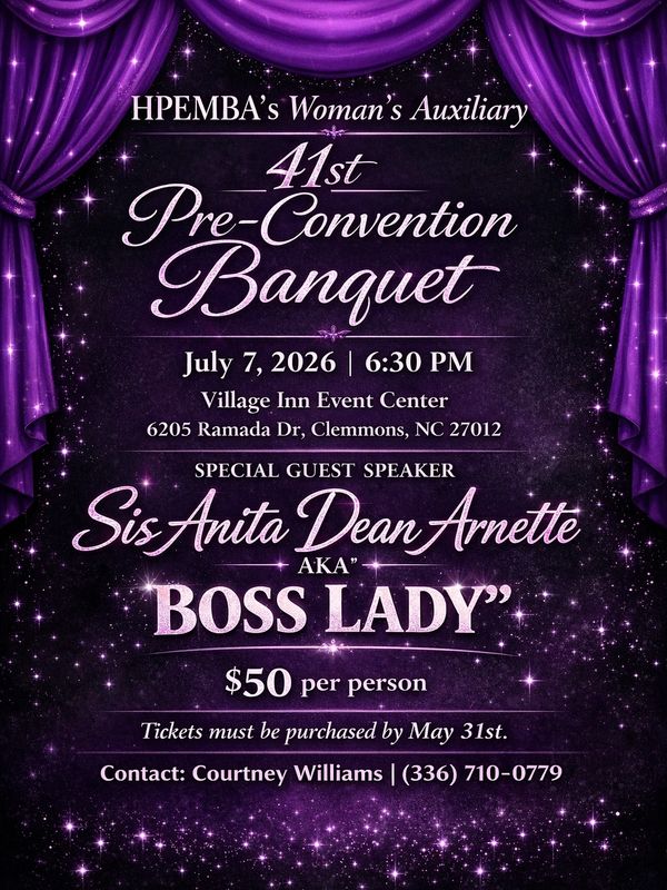 Friday, May 15, 2026 is the deadline to register for the 2026 HPEMBA Scholarship. Scholars should make sure all items associated with their submission packets are complete before sending everything in. For more information or questions, email Sis. Pam Rose at pmrudd63@gmail.com.